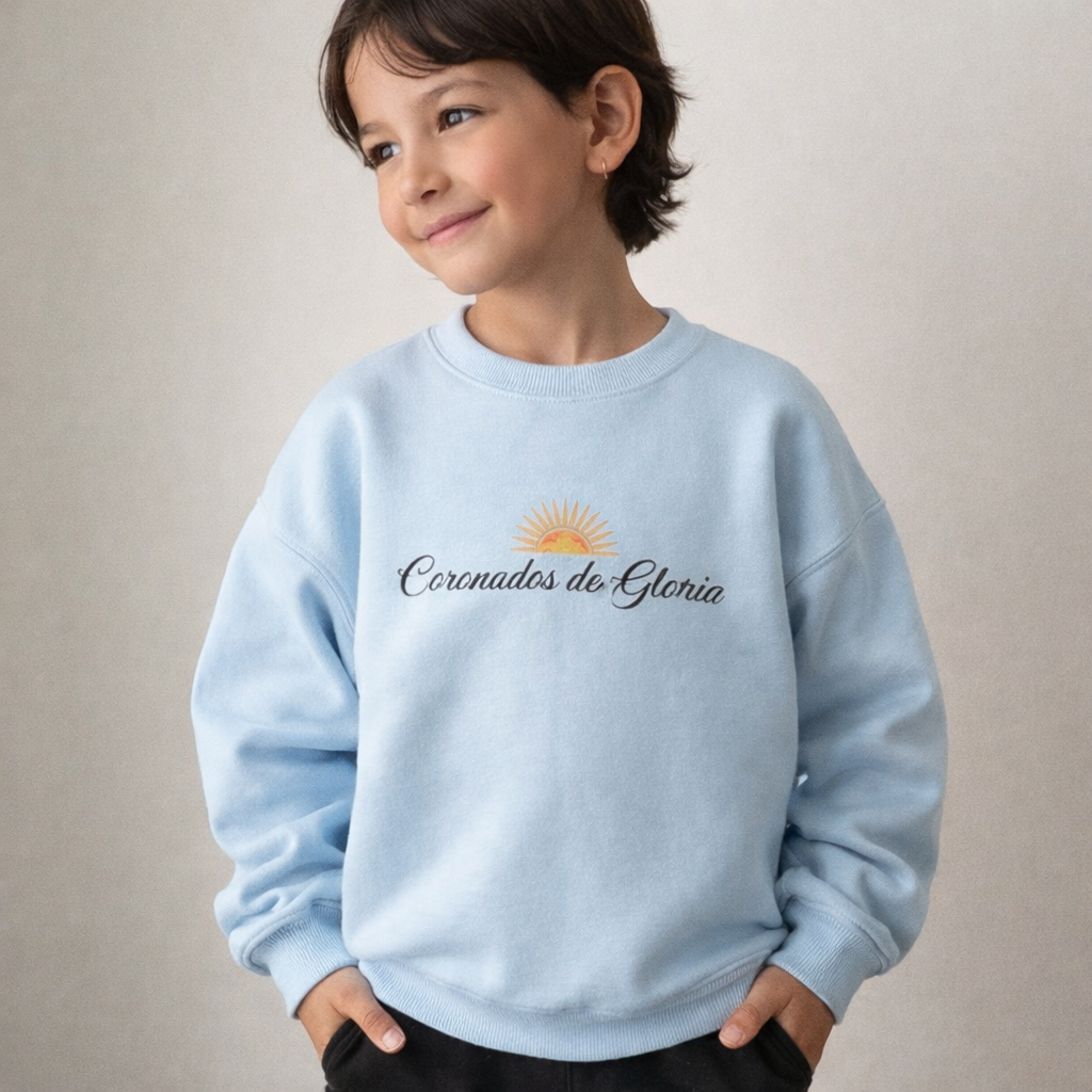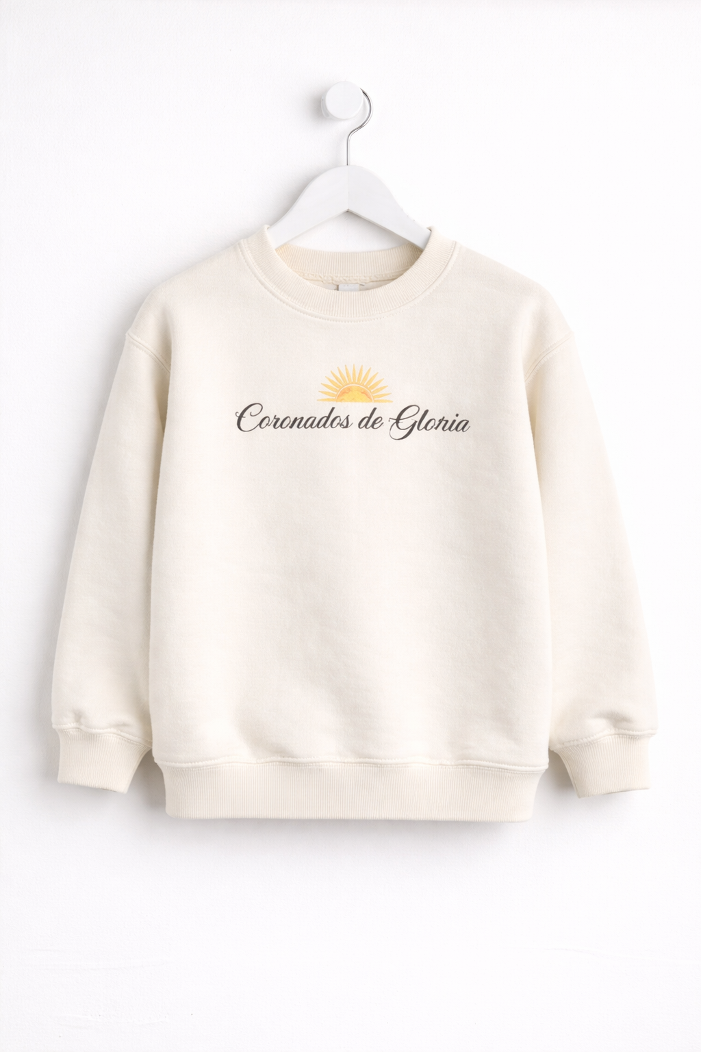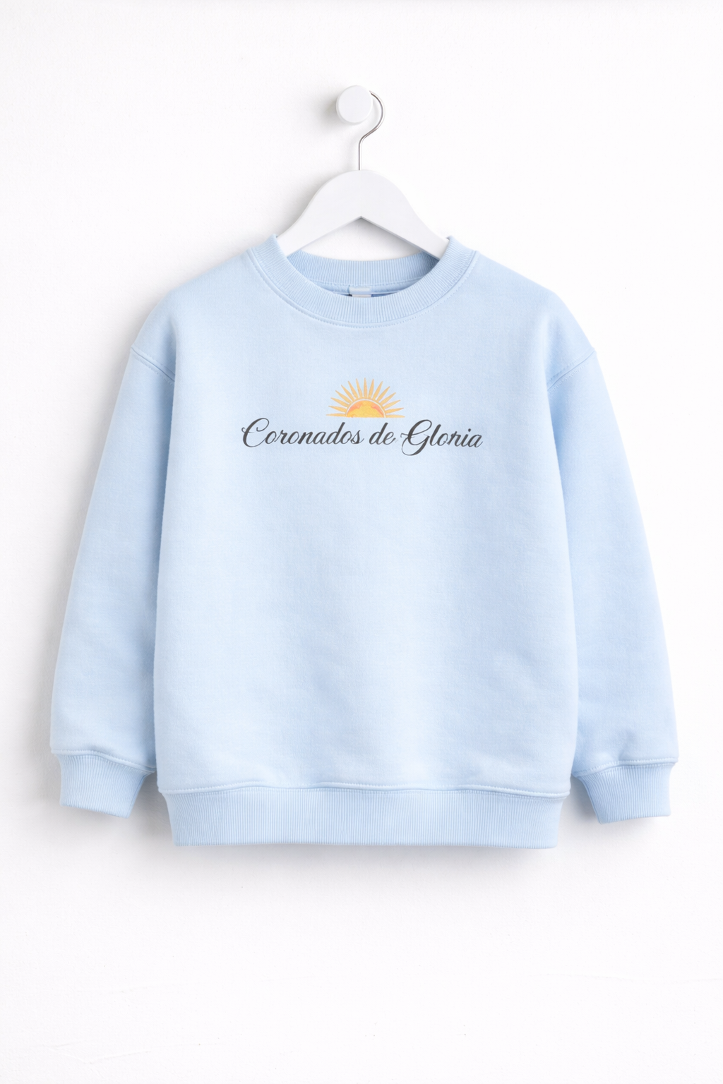 Buzo infantil de friza unisex con estampa “Coronados de Gloria” y sol en el pecho.