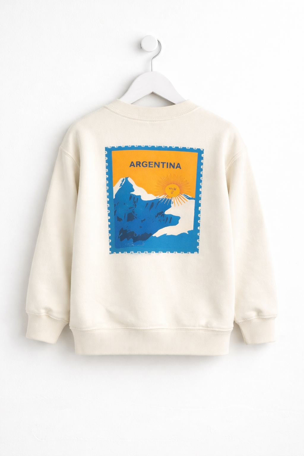 Buzo infantil UNISEX de friza con estampa “PATAGONIA” y sol de mayo en el pecho.