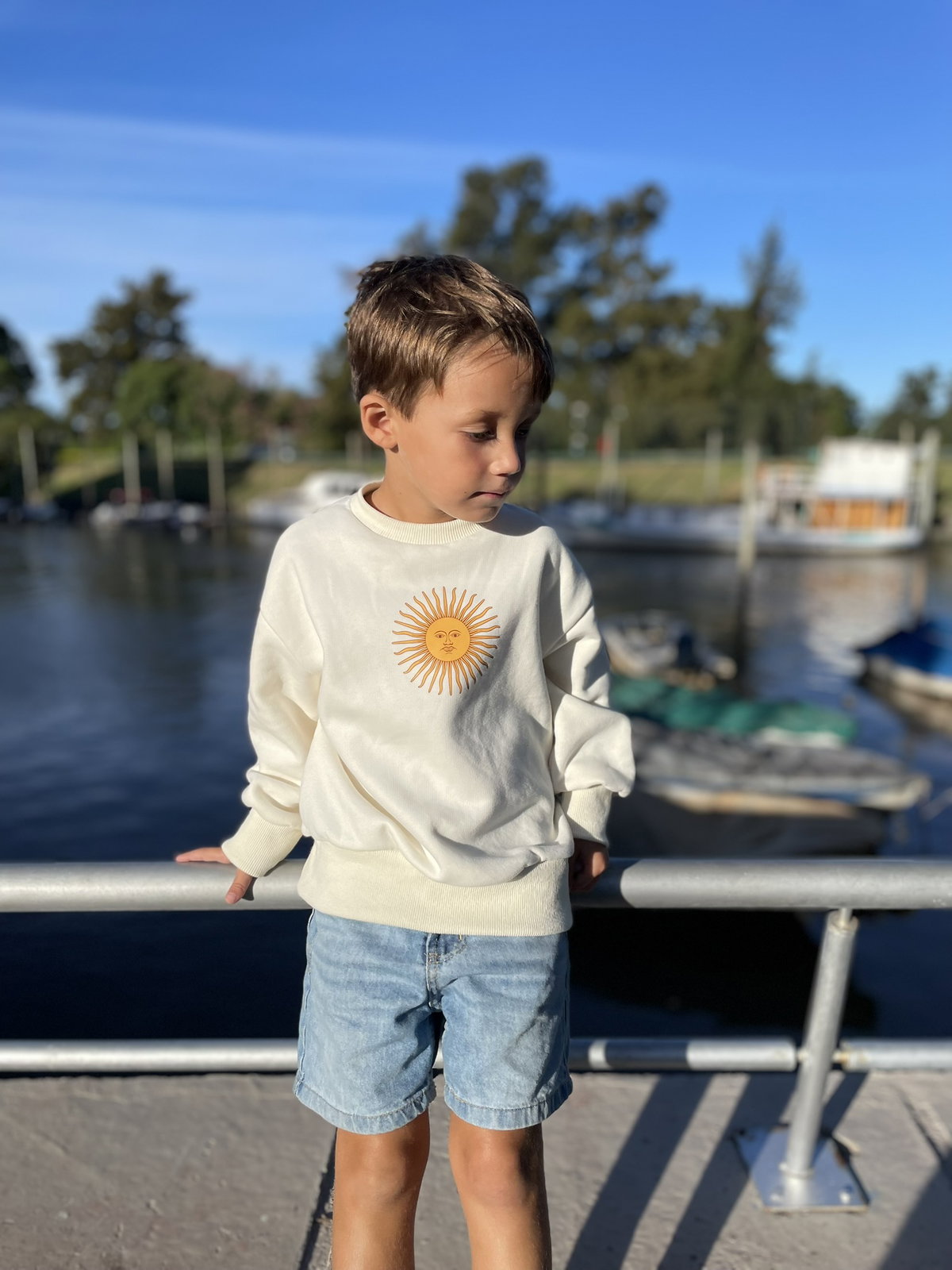 Buzo infantil UNISEX de friza con estampa “SOL DE MAYO”.